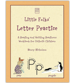 Kindergarten Letter PracticeThis workbook introduces letter formation (penmanship) and beginning phonics. Includes Catholic themes!