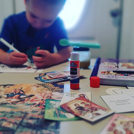 At the end of the course your child will have his own book of Rosary meditations and illustrations!